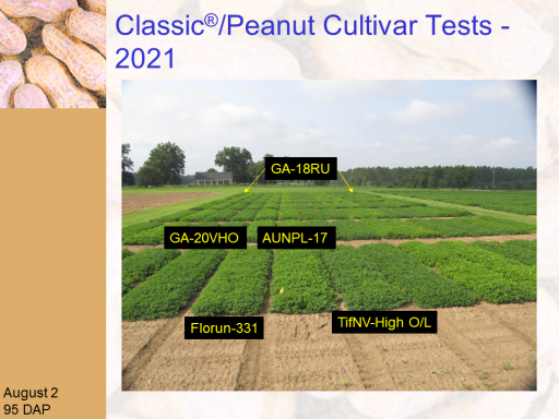ClassicŪ/Peanut Cultivar Tests - 2021<BR>August 2 <BR>95 DAP<BR>GA-20VHO<BR>Florun-331<BR>AUNPL-17<BR>TifNV-High O/L<BR>GA-18RU<BR>