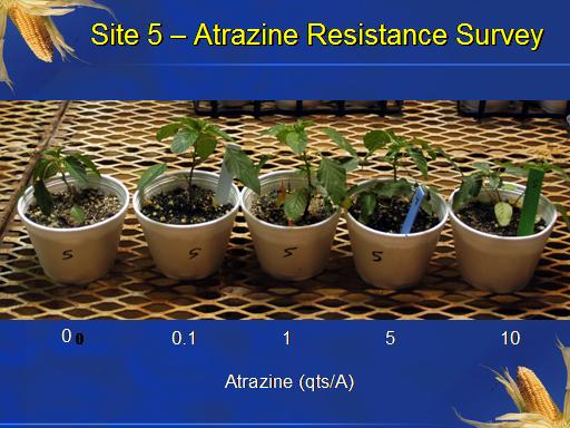 Site 5 – Atrazine Resistance Survey<BR>0<BR>0.1<BR>1<BR>5<BR>10<BR>0<BR>Atrazine (qts/A)<BR>