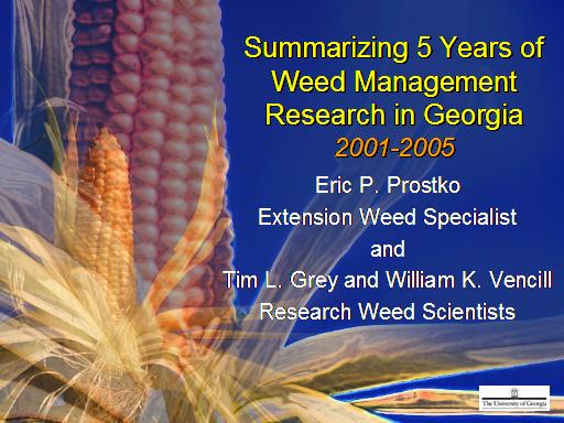 Summarizing 5 Years of Weed Management Research in Georgia 2001-2005<BR>Eric P. Prostko <BR>Extension Weed Specialist <BR>and <BR>Tim L. Grey and William K. Vencill <BR>Research Weed Scientists<BR>