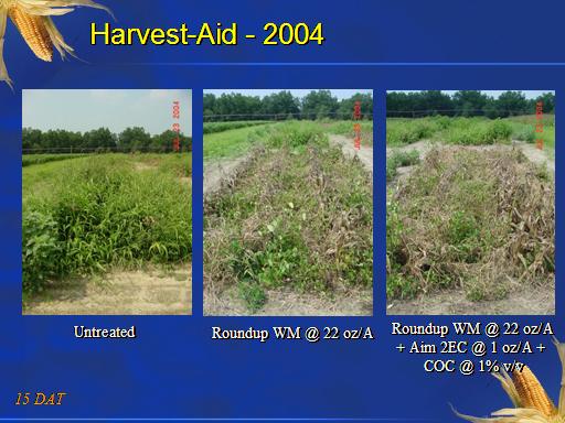Harvest-Aid - 2004<BR>Untreated<BR>Roundup WM @ 22 oz/A<BR>Roundup WM @ 22 oz/A <BR>+ Aim 2EC @ 1 oz/A +  <BR>COC @ 1% v/v<BR>15 DAT<BR>