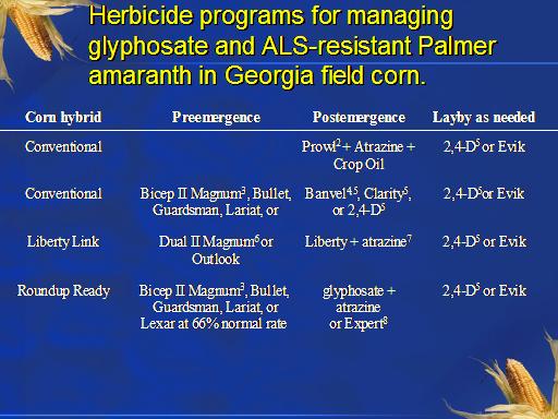 Herbicide programs for managing glyphosate and ALS-resistant Palmer amaranth in Georgia field corn.<BR>