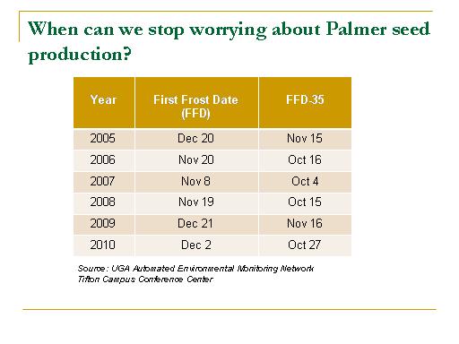 When can we stop worrying about Palmer seed production?<BR>Source: UGA Automated Environmental Monitoring Network <BR>Tifton Campus Conference Center<BR>
