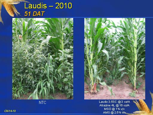 Laudis – 2010 51 DAT<BR>NTC<BR>Laudis 3.5SC @ 3 oz/A <BR>Atrazine 4L @ 16 oz/A <BR>MSO @ 1% v/v <BR>AMS @ 2.5% v/v <BR>CN-14-10<BR>