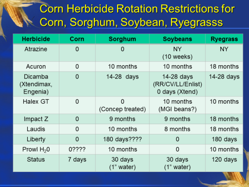 Corn Herbicide Rotation Restrictions for Corn, Sorghum, Soybean, Ryegrasss <BR>