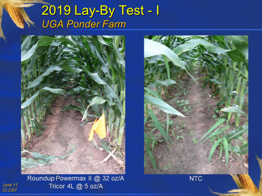 2019 Lay-By Test - I  UGA Ponder Farm<BR>June 11 <BR>33 DAT<BR>Roundup Powermax II @ 32 oz/A <BR>Tricor 4L @ 5 oz/A<BR>NTC<BR>