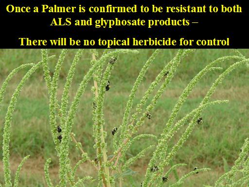 Once a Palmer is confirmed to be resistant to both ALS and glyphosate products –  <BR>There will be no topical herbicide for control<BR>