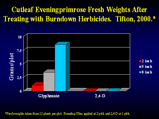 *Fresh weights taken from 12 plants per plot.  Roundup Ultra applied at 2 pt/A and 2,4-D at 1 pt/A.</UL></P>