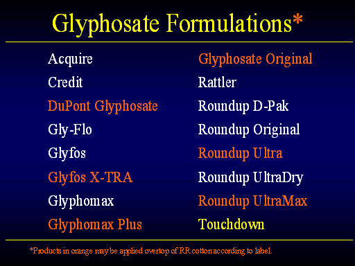 *Products in orange may be applied overtop of RR cotton according to label.</UL></P>