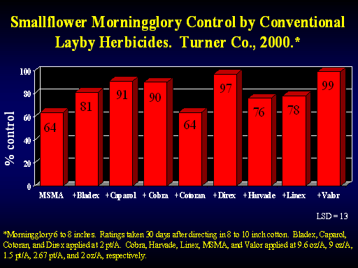 <H1>Smallflower Morningglory Control by Conventional Layby Herbicides.  Turner Co., 2000.* </H1>