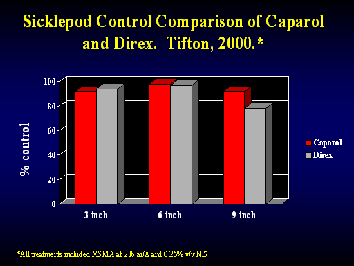 <H1>Sicklepod Control Comparison of Caparol and Direx.  Tifton, 2000.* </H1>