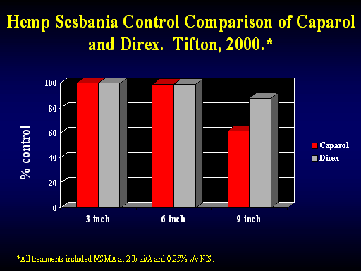 <H1>Hemp Sesbania Control Comparison of Caparol and Direx.  Tifton, 2000.* </H1>