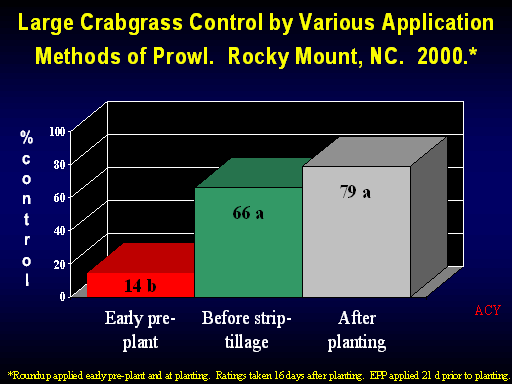 Large Crabgrass Control by Various Application Methods of Prowl.  Rocky Mount, NC.  2000.*</UL></P>