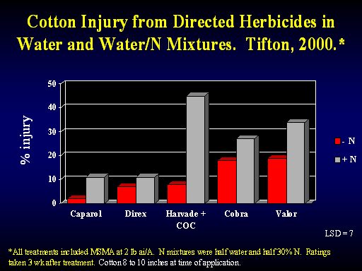 <H1>Cotton Injury from Directed Herbicides in Water and Water/N Mixtures.  Tifton, 2000.* </H1>