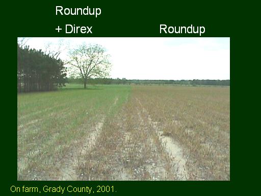 <BR>+ Direx	               	Roundup <BR>On farm, Grady County, 2001.<BR>