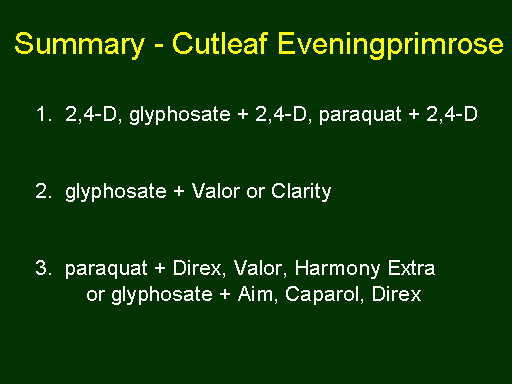 Summary - Cutleaf Eveningprimrose<BR>1.  2,4-D, glyphosate + 2,4-D, paraquat + 2,4-D