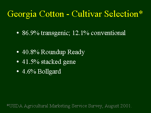 Georgia Cotton - Cultivar Selection*<BR>86.9% transgenic; 12.1% conventional