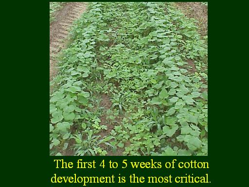 The first 4 to 5 weeks of cotton development is the most critical.<BR>