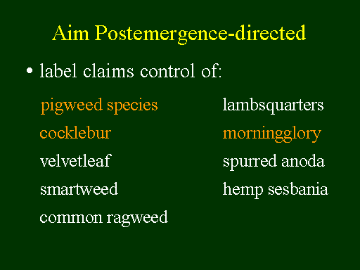 <BR>   common ragweed<BR>Aim Postemergence-directed<BR>