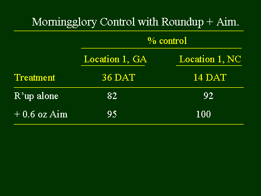 Morningglory Control with Roundup + Aim.