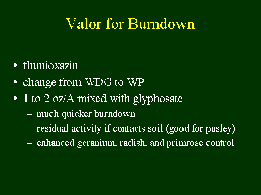 <BR> enhanced geranium, radish, and primrose control<BR>Valor for Burndown<BR>