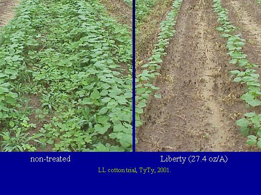 non-treated				Liberty (27.4 oz/A)<BR>LL cotton trial, TyTy, 2001.<BR>