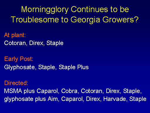 Morningglory Continues to be Troublesome to Georgia Growers?<BR>At plant: