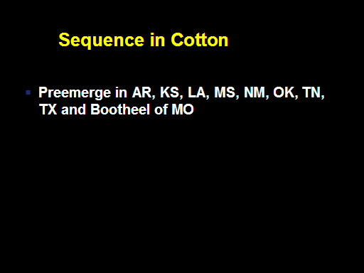 Sequence in Cotton<BR>Preemerge in AR, KS, LA, MS, NM, OK, TN, TX and Bootheel of MO  <BR>
