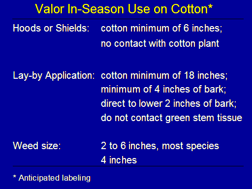 <BR>Lay-by Application:	cotton minimum of 18 inches;