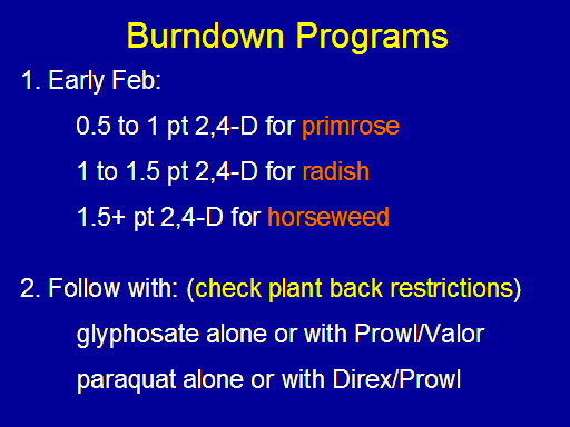 <BR>		paraquat alone or with Direx/Prowl<BR>