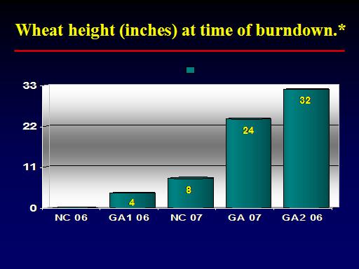 Wheat height (inches) at time of burndown.*<BR>4<BR>32<BR>24<BR>8<BR>