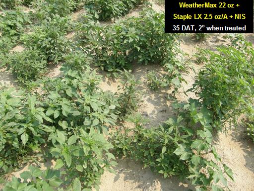 WeatherMax 22 oz + <BR>Staple LX 2.5 oz/A + NIS <BR>35 DAT, 2” when treated<BR>