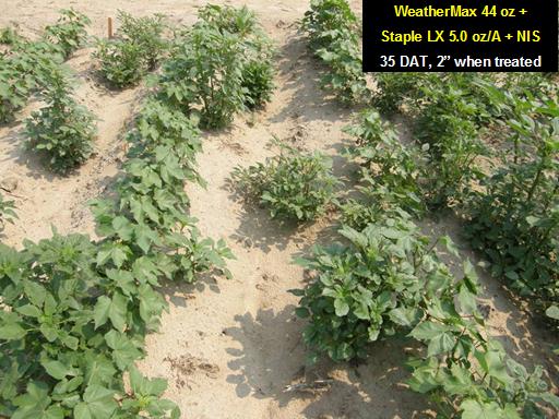 WeatherMax 44 oz + <BR>Staple LX 5.0 oz/A + NIS <BR>35 DAT, 2” when treated<BR>