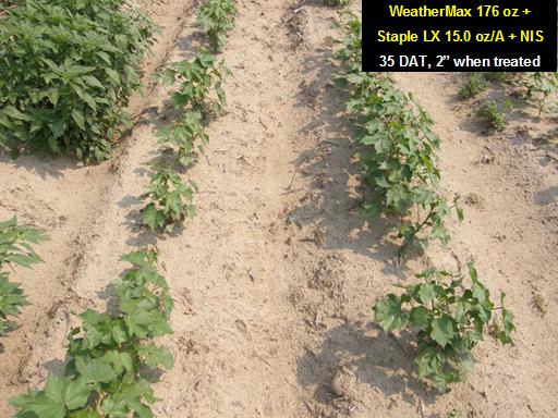 WeatherMax 176 oz + <BR>Staple LX 15.0 oz/A + NIS <BR>35 DAT, 2” when treated<BR>