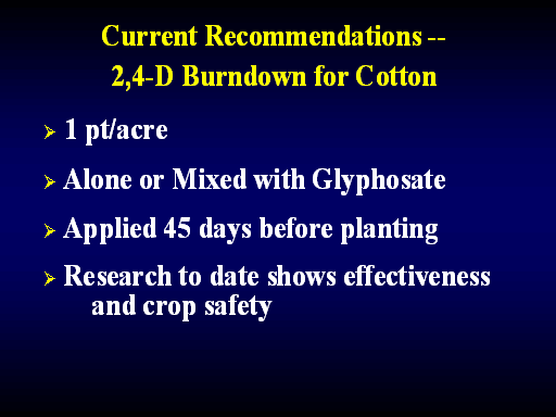 <H1>Current Recommendations -- 2,4-D Burndown for Cotton</H1>