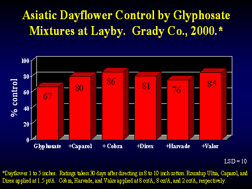 <H1>Asiatic Dayflower Control by Glyphosate Mixtures at Layby.  Grady Co., 2000.* </H1>