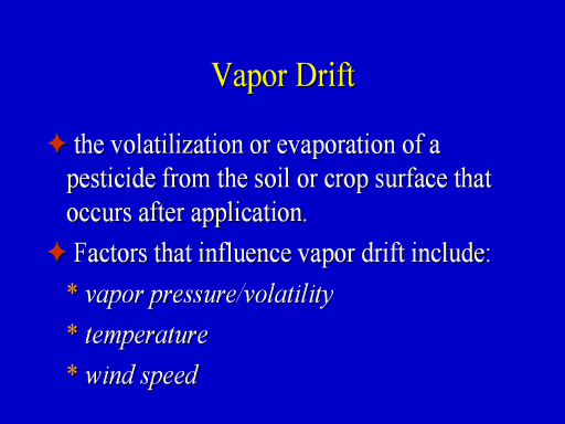 <LI><H2> the volatilization or evaporation of a pesticide from the soil or crop surface that occurs after application.