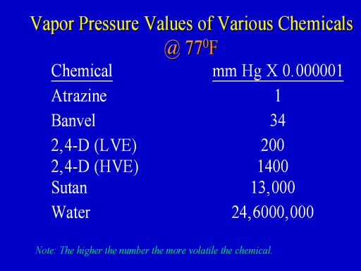 Note: The higher the number the more volatile the chemical.</UL></P>