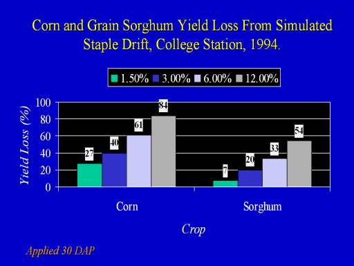 <H1>Corn and Grain Sorghum Yield Loss From Simulated Staple Drift, College Station, 1994.</H1>
