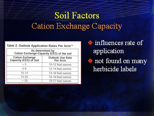Soil FactorsCation Exchange Capacity<BR> influences rate of application