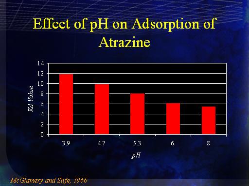 Effect of pH on Adsorption of Atrazine<BR>McGlamery and Slife, 1966 <BR>