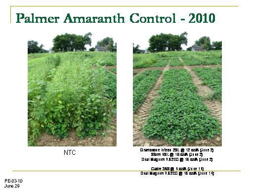 Palmer Amaranth Control - 2010<BR>PE-03-10 <BR>June 29<BR>NTC<BR>Gramoxone Inteon 2SL @ 12 oz/A (June 2) <BR>Storm 4SL @ 16 oz/A (June 2) <BR>Dual Magnum 7.62EC @ 16 oz/A (June 2) <BR> <BR>Cadre 2AS @ 4 oz/A (June 14) <BR>Dual Magnum 7.62EC @ 16 oz/A (June 14)<BR>