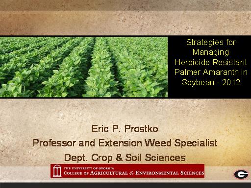 Strategies for Managing Herbicide Resistant Palmer Amaranth in Soybean - 2012<BR>Eric P. Prostko <BR>Professor and Extension Weed Specialist <BR>Dept. Crop & Soil Sciences<BR>