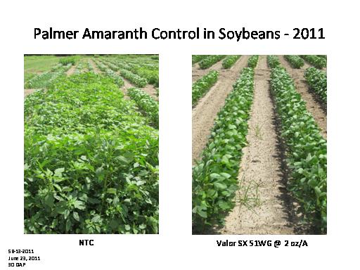 Palmer Amaranth Control in Soybeans - 2011<BR>SB-13-2011 <BR>June 23, 2011 <BR>30 DAP<BR>NTC<BR>Valor SX 51WG @ 2 oz/A<BR>