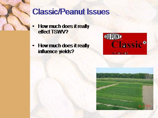 Classic/Peanut Issues<BR>How much does it really effect TSWV? <BR> <BR>How much does it really influence yields?<BR>