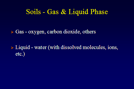 Soils - Gas & Liquid Phase<BR>Gas - oxygen, carbon dioxide, others <BR> <BR>Liquid - water (with dissolved molecules, ions, etc.)<BR>