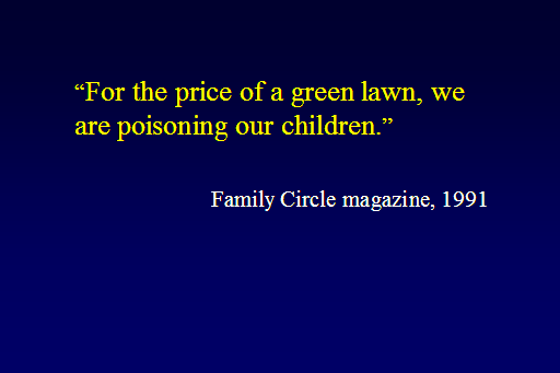 “For the price of a green lawn, we are poisoning our children.” <BR>Family Circle magazine, 1991<BR>