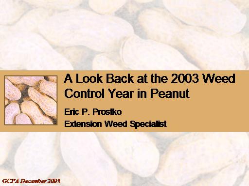 A Look Back at the 2003 Weed Control Year in Peanut<BR>Eric P. Prostko