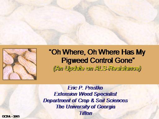 “Oh Where, Oh Where Has My  Pigweed Control Gone”  (An Update on ALS-Resistance)  <BR>Eric P. Prostko <BR>Extension Weed Specialist <BR>Department of Crop & Soil Sciences <BR>The University of Georgia <BR>Tifton<BR>GCPA - 2005<BR>