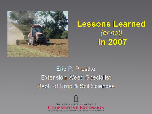 Lessons Learned  (or not)  in 2007<BR>Eric P. Prostko <BR>Extension Weed Specialist <BR>Dept. of Crop & Soil Sciences<BR>
