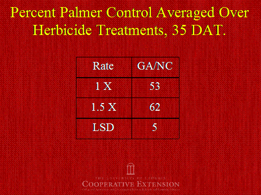 Percent Palmer Control Averaged Over Herbicide Treatments, 35 DAT.<BR>